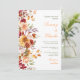 Esta invitación de boda rústica y elegante cuenta con flores y follaje de vegetación en acuarela naranja, roja y amarilla. El texto combina fuentes manuscritas y serif para una apariencia elegante y moderna. Esto es perfecto para una boda de otoño.