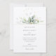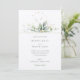 Pone el escenario para sus próximos nupciales con esta caprichosa invitación a la boda, que equilibra la belleza natural de la vegetación acuática con la sofisticación de las salpicaduras de oro. El diseño presenta una gama de delicadas hojas en una paleta de salvia, oliva, eucalipto y menta, acentuadas por pinturas de oro para un toque de opulencia. Esta invitación desprende un ambiente bohemio con un toque moderno, perfecto para las parejas que buscan una invitación única e inspirada en la naturaleza de su día especial. La disposición de la tarjeta está pensada para resaltar los nombres de la pareja y los detalles bodas en un tipo de letra elegante y legible.