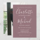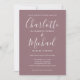 Con nombres de estilo de firma destacados, esta elegante invitación de boda se puede personalizar con su información en letra blanca chic sobre un fondo de color mauve con la foto elegida en el reverso. Puede personalizar el color de fondo para que coincida con el tema de su boda. Diseñado por Thisisnotme©