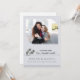 Nuestra invitación de boda con foto de pinstripe clásica en tonos plateados, tiene un hermoso mensaje, anillos de boda y es perfecta para cualquier unión, ya sea una boda, ceremonia de compromiso o unión civil. Tarjeta totalmente personalizable por delante y por detrás.