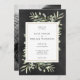 Con delicadas hojas de color agua sobre un fondo de pizarra de moda. Esta elegante invitación botánica a la boda se puede personalizar con tu foto y detalles especiales del día de la boda en la tipografía de la moda. Diseñado por Thisisnotme©