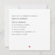 Crea invitaciones nupciales limpias de estilo minimalista con tu foto. Estas invitaciones cuadradas están listas para ser personalizadas con tu foto. La parte frontal muestra su fotografía con sus nombres y fecha de boda acentuada por un gráfico de corazón rojo. El lado inverso tiene un estilo minimalista de repuesto con un tipo de letra negro y liso contra el fondo blanco. Hay mucho espacio para añadir todos los detalles de su boda. En la parte inferior aparece una pequeña gráfica coordinadora del corazón rojo.