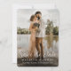 Anuncie los emocionantes detalles de su día de bodas con nuestras elegantes Invitaciones a Guardar la Fecha. Nuestro diseño moderno muestra una impresionante foto vertical que se extiende hasta los bordes. La superposición de texto en blanco añade un toque de sofisticación, complementando con gusto la imagen de la pareja feliz. Elija entre una variedad de formas y tamaños de papel para adaptar la invitación a sus preferencias. La versátil herramienta de diseño le permite personalizar aún más esta foto para guardar la plantilla de fecha, lo que le permite realizar modificaciones adicionales que se adaptan a su estilo y preferencias. El color de vuelta en un cálido tono marrón le aporta un toque refinado, elevando el aspecto general de la invitación.