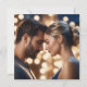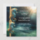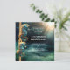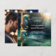 Invitación a la boda con dos caballitos de mar artísticos sobre una cuerda náutica con nudo en un mundo submarino iluminado por el sol. En la parte de atrás está tu foto de personalizado. Hermoso para un boda costero o acuario.