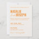Esta invitación a la boda es perfecta para su boda si busca un diseño único y fácil de editar.Una elegante y sencilla invitación a boda de crema minimalista y sencilla. Con un fondo crema claro y claro. Y el naranja audaz y elegante nombre de novia y novio. Y foto cambiable con información editable con nombres también en la parte posterior . Asequible y también es una invitación electrónica digital si quieres enviarla por mensaje de texto o correo electrónico. Toda la información es personalizable haciendo clic en el botón de personalización. Así que agárralo y hazlo tuyo para que invites comprometidos y emocionados.