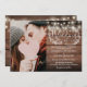 Invitación rústica a la boda, con luces de cuerda de bonito y un delicado jardín floral rústico de hoja botánica, de estilo rústico, con una tipografía de escritura elegante, sobre un fondo rústico de madera. Personaliza tu foto especial y la información del día de la boda. Diseñado por Thisisnotme©