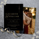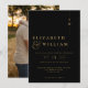 Esta invitación a una boda minimalista en monograma negro y dorado puede ser personalizada con su información en tipografía moderna y una foto especial al revés. Diseñado por Thisisnotme©