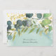 Invitaciones de boda rústicas con vegetación con un fondo degradado de acuarela desvaído, elegantes hojas de eucalipto botánico verde, salpicaduras de lámina de oro falso, una foto de la pareja y una sencilla plantilla de boda que es fácil de personalizar.
