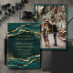 Invitación Boda de fotos de tinta de líquido de oro verde azu