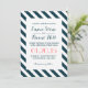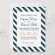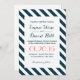 Invitaciones de casamiento en franjas náuticas azul y blanco diagonal.