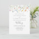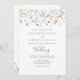 Esta invitación a la boda floral multicolor y salvaje es perfecta para un boda rústico. El diseño se compone de acuarelas rosas, rubias, violetas, navales y elegantes flores blancas con hojas de color verde esmeralda. Guarde el papel incluyendo más detalles en la parte posterior de la invitación en lugar de en una tarjeta separada.