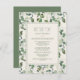 Hermosas hojas de eucalipto verde salvia en acuarela sobre una invitación de recepción de boda de fuga de color crema. Contáctenos para obtener ayuda con la personalización o para solicitar productos coincidentes.