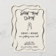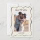 Boda de gafas de tracción caprichosa guardar La mano de la tarjeta de fecha dibujada y la boda de estilo caprichoso ahorra la fecha con dos gafas de champán, texto de letra escrito a mano y un extraño borde de marco. Esta boda de ilustracion hecha a mano, salvo la fecha, también muestra la foto de las parejas en la parte de atrás.