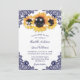 Elegantes invitaciones de casamiento de girasol rústico color azul marino ideal para un campo rústico rústico, jardín, patio trasero o fiesta de bodas de granero inspirada en flores de girasol. Artículos de juego disponibles para complementar estas invitaciones de boda rústicas de moda azul marino.