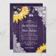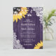 Invitación Boda de girasol Purple Rustic Wood Lace
