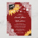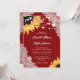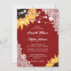 Esta romántica invitación a una boda floral con girasoles en el fondo de una burrega y encaje es perfecta para invitar a sus invitados a su fiesta de bodas rústica roja/patio trasero/granero inspirada en los girasoles.