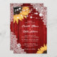 Esta romántica invitación a una boda floral con girasoles en un ambiente de madera de granero y encaje es perfecta para invitar a sus invitados a su fiesta de bodas rústica roja/patio trasero/granero inspirada en girasoles.
