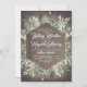 Vegetación de acuarela botánica, fondo rústico de madera y invitaciones para bodas de campo con marco dorado.