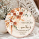 Crea una impresión duradera con esta invitación de boda rústica de madera redonda cortada con grano, diseñada para parecerse a una rebanada de tronco de árbol con anillos de madera naturales. Con acentos de acuarela floral boho en terracota cálida y tonos terrosos, esta invitación de boda única y creativa es perfecta para bodas en graneros, celebraciones en el bosque, temas rústicos vintage y ceremonias de verano al aire libre. El diseño redondo añade un toque verdaderamente atractivo, lo que la convierte en una elección de papelería de boda memorable y atemporal. Ya sea que estés planeando una boda boho-chic, romántica o inspirada en el bosque, esta invitación de boda con corteza de árbol es la forma perfecta de establecer el tono para tu día especial.