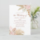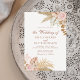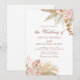 Celebre su día especial con nuestra invitación a la boda de hierba de Boho Floral Pampas, la combinación perfecta de elementos naturales y diseño elegante. Esta invitación se inspira en bohemia, con delicados pastos de pampas, hojas de palmera secas y hojas de monstera exuberantes adornadas con flores exóticas como lirios y rosas. La paleta de colores está formada por tonos beige suaves, rosa polvoriento y sutiles tonos rojos, todo ello decorado con un fondo blanco y nítido. El texto se presenta de forma muy atractiva en una combinación de escritura boho y sofisticados tipos de letra, acentuados en terracota, añadiendo un toque de calidez y encanto. La parte trasera de la invitación se encuentra a la sombra de la terracota, como las letras de la parte delantera, lo que da un aspecto cohesivo y elegante.