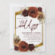 Esta invitación a la boda incluye flores de otoño de color borgoñona pintadas con aceite rústico sobre la vegetación y la pampa con un elegante marco follaje de oro y fondo.
