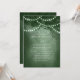 Crea una atmósfera encantadora con esta invitación a bodas de ensueño rústico verde. Con un bello árbol rústico verde adornado con lustros de cuerdas de ensueño, esta invitación marca el tono romántico perfecto para su día especial. Ideal para ceremonias al aire libre y nocturnas, captura la esencia de la naturaleza y le da un toque caprichoso a su boda. Personalice sus detalles para que su celebración sea inolvidable.