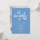 Cuando el retro se encuentra con el toque moderno. Invitación a una boda de guion retro blanco y polvoriento azul con una caligrafía retro clásica y elegante en blanco clásico y azul polvoriento. Añade tu foto de pareja en la parte posterior (o borra si no quieres ninguna foto), y agrega tu código QR, para rsvp, detalles y convierte esta invitación en una invitación asequible todo en una sola boda.