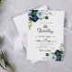 Invitación Boda de guión de flores azul claro de la marina