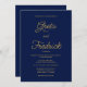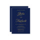 Esta elegante invitación a la boda es eterna, su diseño es sencillo y minimalista. El diseño presenta detalles de la invitación a la boda de personalizable en la elegante tipografía de escritura dorada; sobre un fondo azul marino siempre elegante y sofisticado.