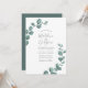 Esta invitación a la boda de eucalipto, sencilla, moderna y elegante, presenta una hermosa decoración de color agua con eucalipto. ¡Es hermoso! Vea la coordinación de artículos en nuestra tienda, Enchanted Finch.