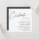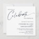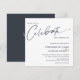 Simple minimalista moderno "celebrar" con sólido azul gris oscuro y flores silvestres en un frasco en blanco en la parte trasera de la invitación. Envíeme un mensaje si necesita ayuda o tiene alguna solicitud especial.