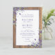 ¡Estamos tan contentos con este tradicional eucalipto de lavanda formal, la invitación rústica a la boda! Con tipografía de escritura con letras a mano, flores botánicas de lavanda y eucalipto y textura de madera de pino con hongos. Parte de una suite boda que esperamos que te guste tanto como nosotros: https://www.zazzle.com/collections/lavender_eucalyptus_floral_wood_wedding-119193107197450251 Copyright Elegant Invita, todos los derechos reservados.