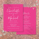 Con nombres de estilo característico, esta moderna invitación a una boda rosa caliente se puede personalizar con toda la información especial del día de la boda al revés, incluyendo su RSVP, alojamiento y detalles adicionales. Diseñado por Thisisnotme©