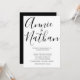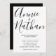 Invitación a la boda de guiones elegantes en blanco y negro . Envíe a sus amigos y familia esta invitación a la boda de estilo elegante en blanco y negro . La parte trasera de la tarjeta es Negro . Personalizar por el cambio de los nombres de la novia y el novio y la fecha y ubicación del boda. No dude en ponerse en contacto conmigo para cualquier personalización adicional en mypaperlove2021@gmail.com