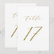 Cuadro 17. Una elegante tarjeta de números de tabla con un guión minimalista dorado y tipografía clásica. Este número de mesa dorado y blanco es perfecto para bodas, graduación, duchas de bebé, duchas de novias y otros eventos. Hay otros números y colores disponibles.