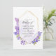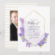 Violeta acuarela - invitación a una boda floral lila con un personalizable geométrico de marco herbario dorado a los detalles de tu evento. Ideal para cualquier tema o boda en el jardín. La foto al revés es opcional. Si prefiere eliminarla, desplácese hasta la parte inferior de "Personalizar esta plantilla" y haga clic en "Editar usando la herramienta de diseño". En la Herramienta de diseño puede editar, escalar, eliminar o mover cualquier texto o elemento de diseño que desee.