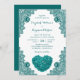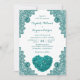 Complemente su verde azulada fiesta de bodas con estas elegantes invitaciones caseras verde azuladas rústicas personalizadas, con un corazón de horangea sobre un fondo blanco y llano adornado con verde azulado encaje floral. Personalice fácilmente estas verde azuladas tarjetas bodas con los detalles de su boda. Para encontrar los artículos que coincidan, por favor contáctenos a través de la charla de Zazzle.