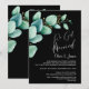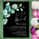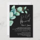 Invite a sus amigos y seres queridos a la recepción después de la boda con esta invitación negra de hojas de eucalipto verde acuarela para celebrar su matrimonio reciente.