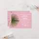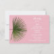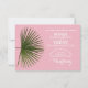 diseño boda con hoja de palmera tropical. Una palmera verde rodeada de un fondo rosado. Un gran diseño para un boda de verano moderno. Si quieres ayuda para personalizar este diseño, por favor, no dudes en contactarme, hay un botón de preguntar a este diseñador justo debajo de este texto.