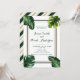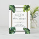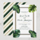 Invitaciones de boda de hojas de palma tropicales blancas y doradas.