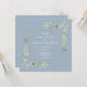 Con delicadas hojas de eucalipto rústico en acuarela sobre un fondo azul polvoriento. Esta invitación de boda botánica moderna se puede personalizar con los detalles de su día especial de boda. Diseñado por Thisisnotme