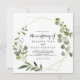 Esta invitación a la boda de hojas verdes tropicales es perfecta para un boda moderno. El diseño está decorado con hermosas hojas verdes pintadas a mano, adornando un marco geométrico dorado.