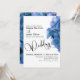 Invitación Boda de Hydrangea con Acuarela Azul de Letra Scrip
