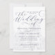 Impresiona a tus invitados con esta elegante invitación de boda de JessicaAmber. Esta carta clásica incluye un título de caligrafía romántica para "el boda de". Las elegantes letras de color azul oscuro muestran los nombres de los novios y novios, así como los detalles del boda, incluyendo la ubicación, fecha y hora. El fondo tiene un ilustracion vintage débil de un castillo, que se puede reemplazar con una imagen del destino en el que se casará (se prefiere fondo blanco o transparente). Esta invitación es preferible para cuando la pareja esté organizando el evento. Busque en mi colección el conjunto de invitaciones coincidentes. ⚠ Si desea editar la caligrafía y utilizar caracteres especiales, copiarla y pegarla desde esta página: bit.ly/Emeline-Script ⚠・・・ Para más suites bodas, visite mi tienda Zazzle.com/EventsByJessicaAmber ・・・ Para órdenes personalizados, envíeme un mensaje en Zazzle
