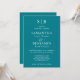 Clásicas iniciales de monograma verde azulado invitaciones de boda invitadas a la boda perfectas para un boda con un entorno formal.