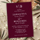 Las clásicas iniciales en monograma burdeos invitan a la boda de la invitación perfecta para un boda con un entorno formal.