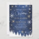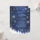 Invitación de boda de invierno de copo de nieve moderno en azul marino y dorado.