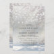 Elegantes invitaciones de boda de navidades rústicos con fondo de madera blanca congelada, un overlay blanco, luces de cuerdas y una plantilla de boda que es fácil de personalizar.