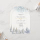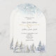 Celebra tu amor en un mágico maravilloso país invernal con esta nevada invitación a una boda forestal. Con un paisaje sereno de pinos empolvado en la nieve, suaves tonos de agua y un elegante corazón de cuerda dorada, este diseño marca la pauta para una romántica ceremonia en los bosques. La silueta de arco curvo aporta un toque moderno a la temática rústica-moda, mientras que la delicada caligrafía le da un toque atemporal. Perfecto para bodas de invierno rodeadas de naturaleza, momentos acogedores y belleza estacional.