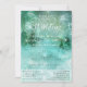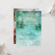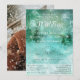 Una elegante invitación de boda de País de las Maravillas de Invierno en azules y verdes encantadores y soñadores con nieve arremolinada que cae contra un telón de fondo de pinos. Completa con información de RSVP y tu foto personalizada en el reverso. La parte posterior presenta una nevada transparente sobre tu foto para que parezca que está nevando. Si deseas eliminar esta capa, puedes hacerlo seleccionando "Personalizar", desplazándote hasta el final del formulario y haciendo clic en "Editar en la herramienta de diseño" para eliminarla.